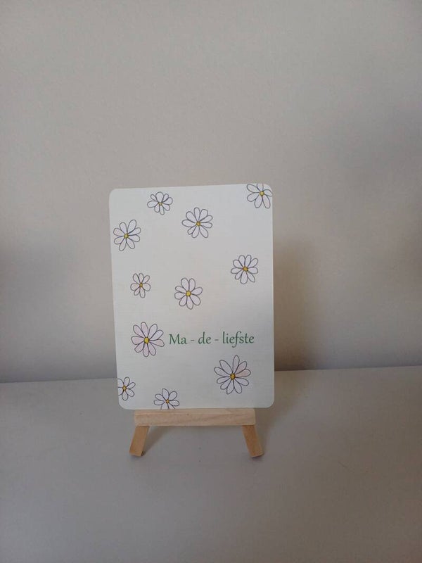 Met de speelse tekst 'Ma-de-liefste' breng je een grote glimlach op haar gezicht. Perfect om te geven bij een cadeautje of gewoon om te laten weten hoeveel ze voor je betekent